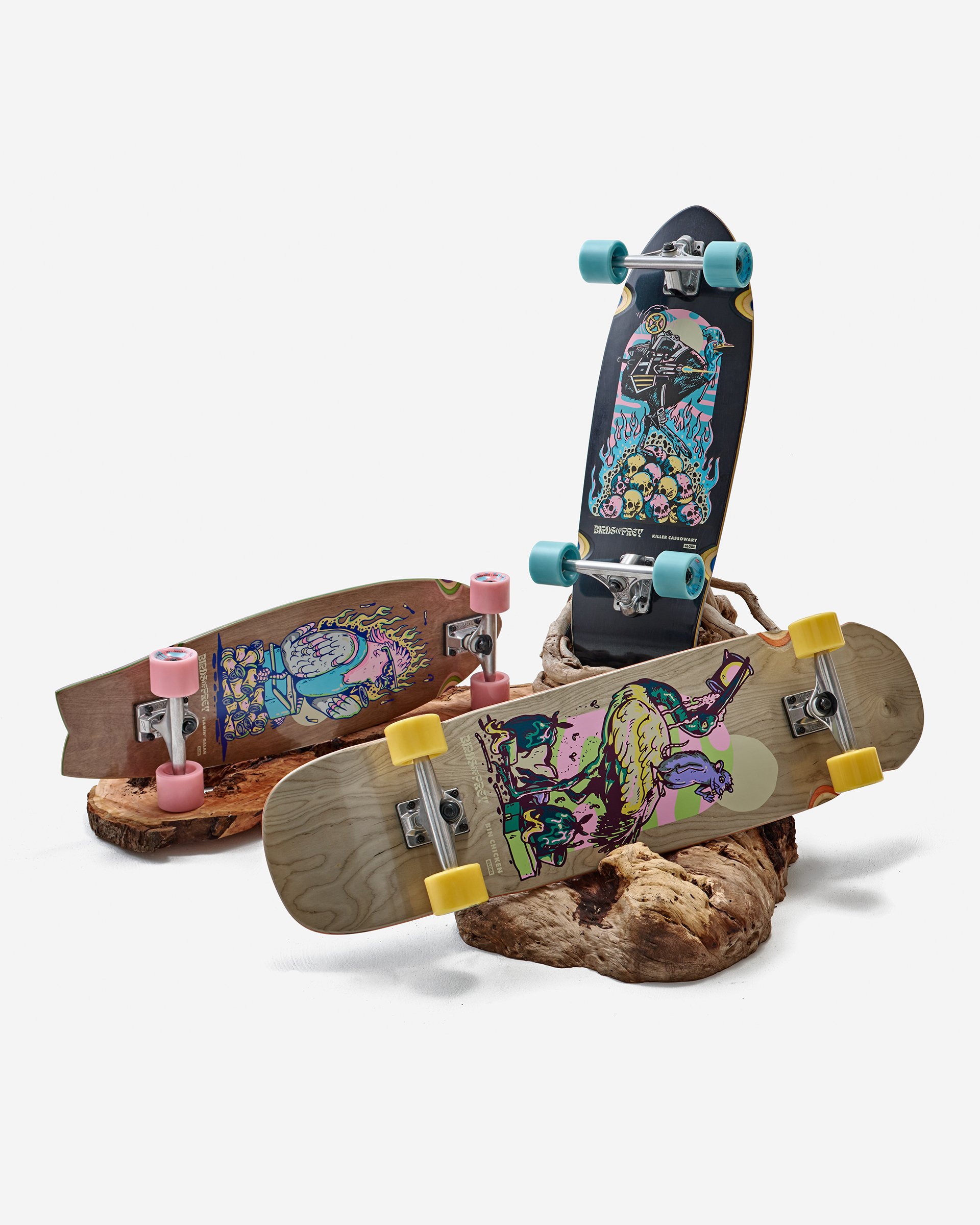 We've teamed up with Sydney's resident Designer, Artist, Illustrator, Muralist, Pattern Maker and Art Director Brent 'Biffy' Smith to create a colourful character-based art on Globe boards. This series is called 'Birds of Prey'... a true take on out mischievous feather friends from down under.