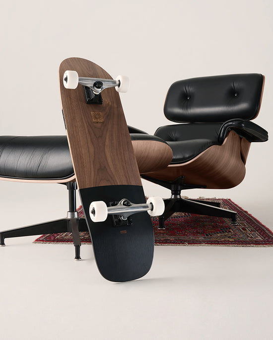 Sharing a similar appreciation for craftsmanship, details, and “taking your pleasure seriously”, this Limited Edition Globe skateboard unites furniture design and skateboarding, by blending the work of Charles and Ray Eames with skate culture. Every inch of this skateboard pays homage to their iconic Lounge Chair and Ottoman and its unparalleled design legacy.