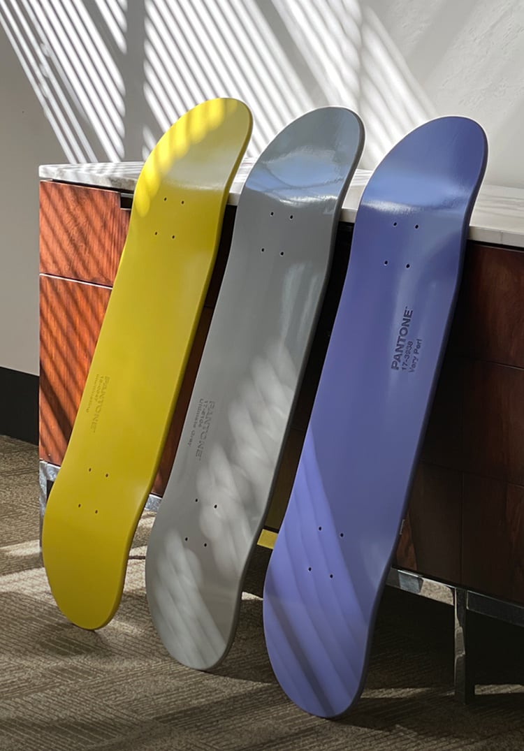 Since 2020, we have collaborated with Pantone™ to produce collector’s edition box sets of skateboard decks, offering fellow design and colour enthusiasts the ability to skate or collect a piece of colour trend history.